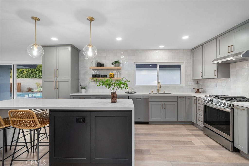 Welcome to your dream home in the heart of Tustin! This newly renovated ranch-style gem is a single-story, single-family haven located within the sought-after Foothill High School district boundary. Boasting 5 bedrooms, including a versatile fifth bedroom currently staged as an office, this residence offers an ideal blend of modern elegance and comfort. Step into luxury as you explore the spacious interiors adorned with brand new finishes throughout. The kitchen is a chef's delight with state-of-the-art features, including a waterfall island that adds a touch of sophistication. Enjoy the perfect balance of form and function in this culinary haven designed for both entertainment and daily living. This home is not just about indoor elegance; it seamlessly blends indoor and outdoor living - especially since all the windows and slider doors have been replaced with new dual pane windows and sliders doors. Step outside to your private oasis featuring a heated pool and spa, inviting you to relax and unwind in style. The newly constructed composite deck in the backyard provides a perfect setting for al fresco dining, entertaining friends, or simply basking in the Southern California sun. Experience peace of mind with a brand new shingle roof that not only enhances the home's curb appeal but also ensures long-term durability. The finished garage with an epoxy floor adds a touch of luxury to the practical aspects of homeownership. In addition to being in a prime location- just one block away from North Tustin and located near the 55, 22, and 5 Freeways - this residence offers a perfect fusion of convenience and tranquility. Don't miss the opportunity to make this newly renovated ranch-style home yours - where comfort, style, and modern living converge seamlessly. Welcome to your new chapter in Tustin!