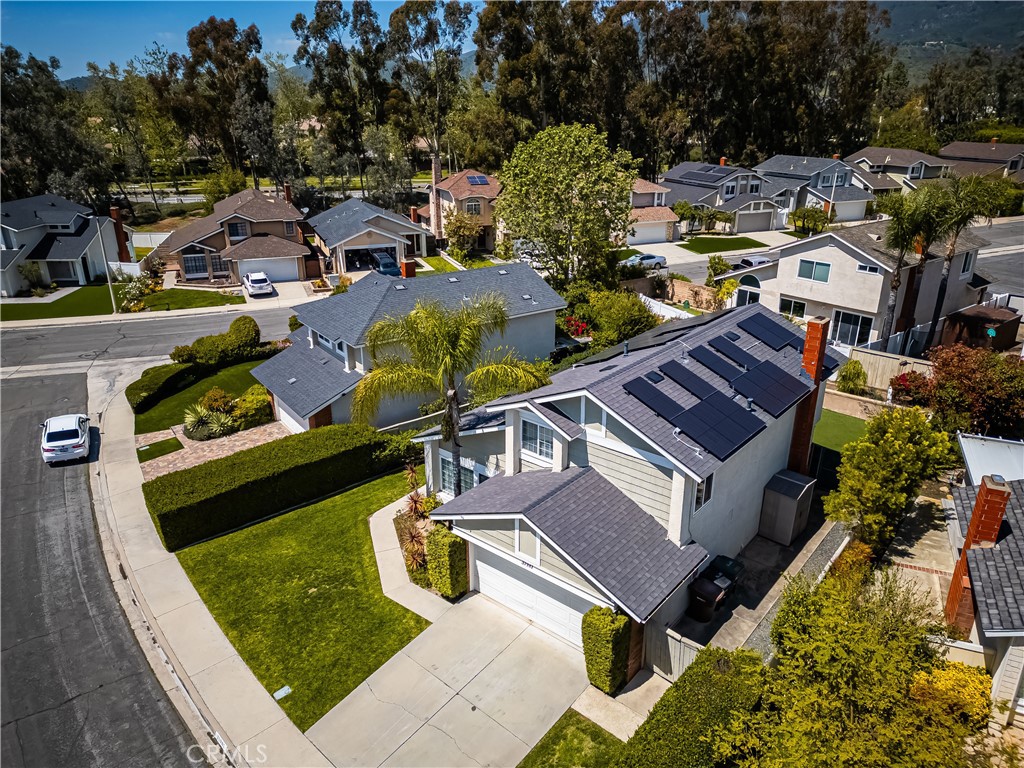 Welcome to 31981 Lazy Glen Lane, located on a cul-de-sac street, surrounded by all of the beautiful amenities Robinson Ranch has to offer. The entry to the home is unique, with a rose lined pathway to a private front door. Upon entering, the dramatic vaulted ceilings and airy feeling are immediately apparent. The spacious living and dining rooms are adorned with large windows, providing ample natural light. The gourmet kitchen has stainless steel appliances, a stainless Kohler sink, granite counter tops, a stone backsplash, customized cabinets with pull-out drawers, recessed lighting and large windows with views of the beautiful backyard. The downstairs includes wood floors, upgraded windows, new light fixtures, newly painted stair railing, a powder room and laundry room with access to the garage. The upstairs features three bedrooms and two baths. The Master suite has a spacious walk-in closet with custom built-ins, as well as a dual sink bathroom and shower. Recent upgrades include: NEW roof, NEW A/C, paid off solar and an EV outlet in the garage. The tranquil backyard is very low maintenance and includes artificial turf and an extra wide dog-run or side-yard area. Robinson Ranch is highly coveted for all it has to offer: biking, hiking, tennis courts, park, sports court, tot lots, swimming pool and spa. Walk to Robinson Elementary without crossing any streets! Its a very close distance to Rancho Santa Margarita and walking distance to RSM Lake, award winning schools, close to regional parks and Tijera's creek golf course. Enjoy the close proximity to the 4th of July fireworks and the Santa Parade at Christmas time. This neighborhood is storybook living! And best of all, no Mello Roos.