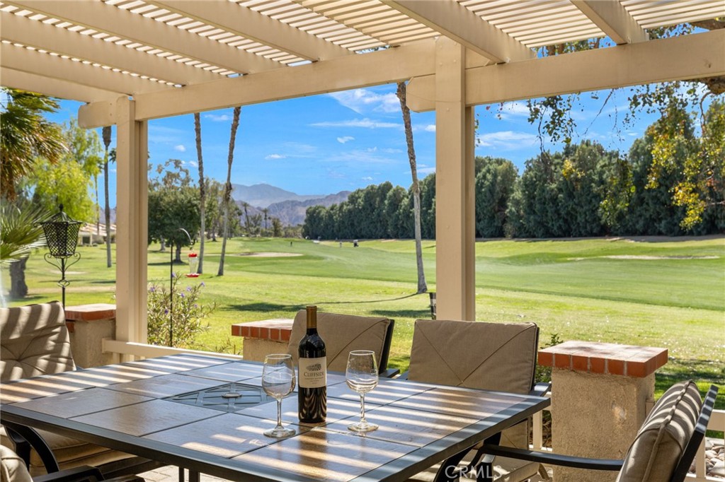 Location and Views! Best southwest views in the Resorter! This spectacular 3 bedroom 2 bath property is located behind the gates of the Palm Desert Resort Country Club, home of the premier pickleball club, 'Tennis in a Pickle.' This golf course home is located on the 17th fairway, with a spectacular, unobstructed view of the golf course and mountains. The entire house has been renovated, floor to ceiling to include: new kitchen, baths, flooring, third bedroom or office (with sliding glass door to the patio), a fresh coat of paint, maximized patio space with pergola and full size cement brick pavers. These high quality bricks are also used in areas on El Paseo. Doors & windows have been replaced with double pane for thermal & sound efficiency. The extended patio is prime for dining in th...