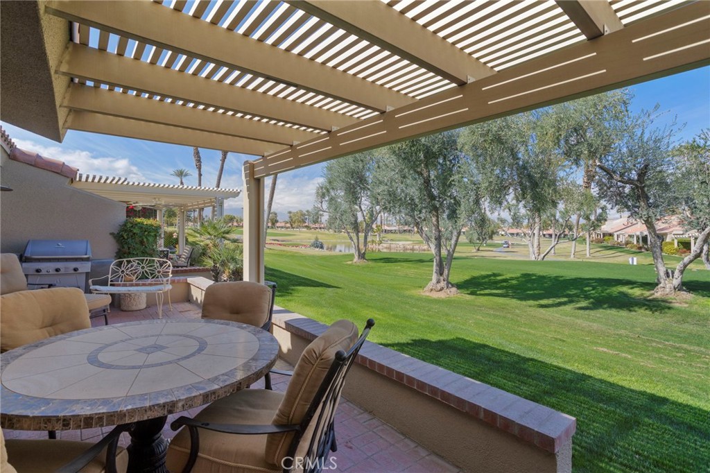 Welcome to the most coveted model plan in PDR, the ST ANDREWS, featuring 2 bedrooms, 2 baths plus DEN/OFFICE that could be converted to a third bedroom. Located behind the gates of Palm Desert Resort Country Club, this beautiful property is south facing on the golf course with one of the best golf course and mountain views in the community. This property is turnkey furnished, and features new windows, new sliding doors, central vacuum system, new water heater, remodeled kitchen and baths, newer tile floors, extended patio with patio cover and more. This split master floor plan is one of the most popular in the community. The abundance of windows brings in plenty of natural lighting, the separate bedrooms allows for privacy, kitchen has plenty of storage, the dining room has a spectacula...